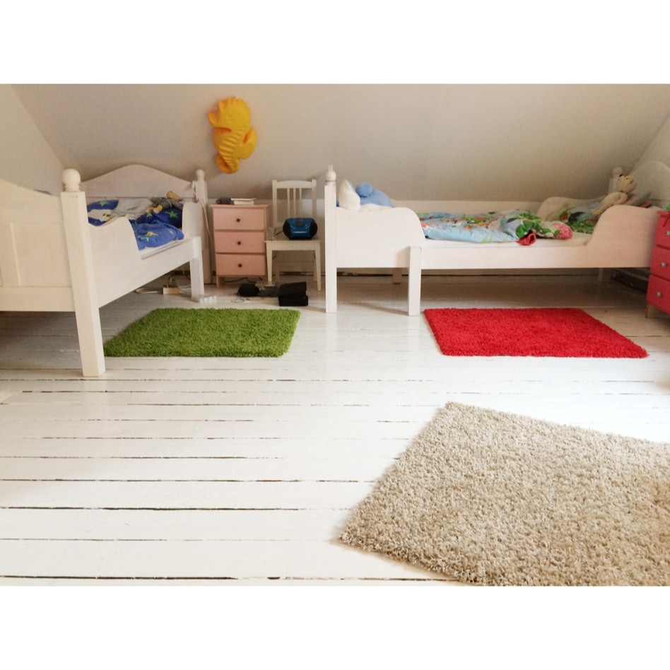 Das Kinderzimmer unter dem Dach bietet viel Platz und zwei Kinderbetten